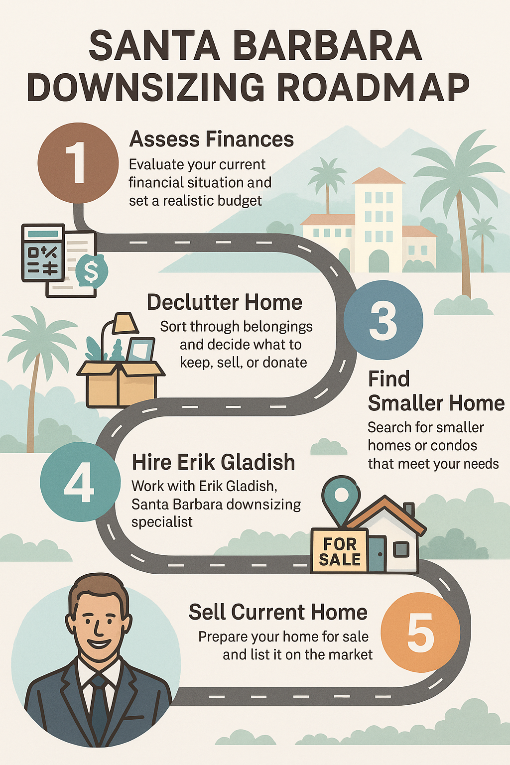 Downsizing isn’t just about selling a house—it’s about navigating a life transition. Erik Gladish has worked with many Santa Barbara homeowners making this move and provides: