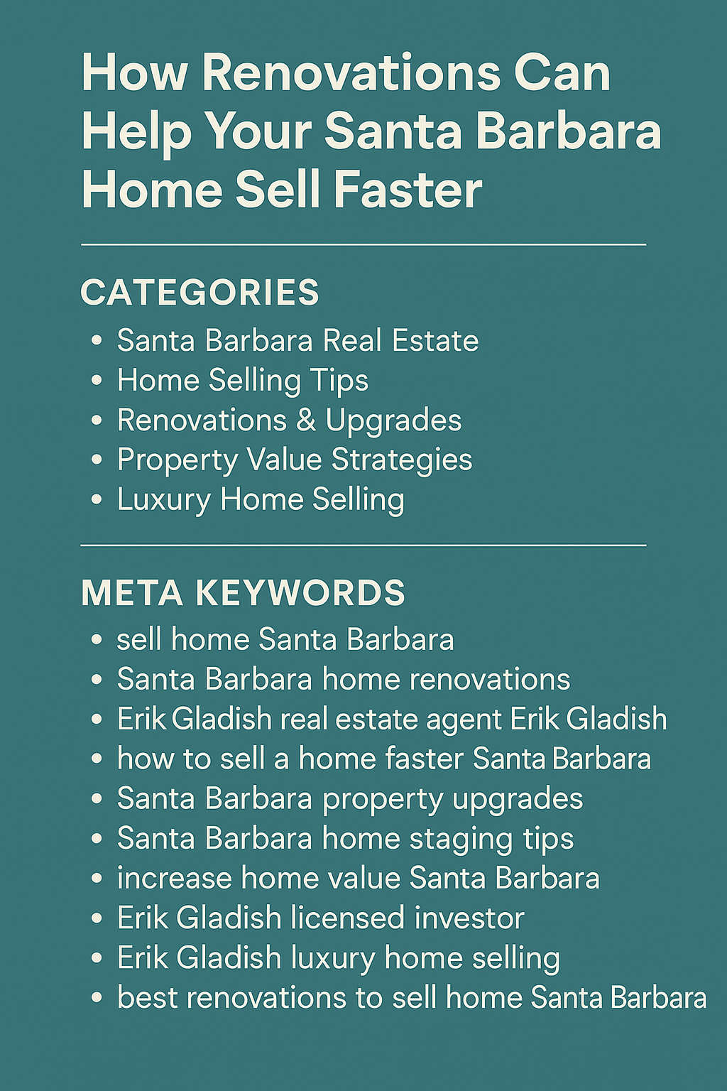 Sell your Santa Barbara home faster with smart renovations. Erik Gladish shares trusted tips on upgrades that attract buyers and boost value.